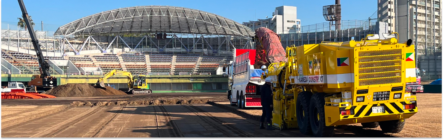 私たち亀田コンストラクトは、道路や街をつくり、守ることで、地域の暮らしをより便利で快適にする仕事をしています。路面切削工事・舗装工事・路面清掃作業・施工管理まで一貫して担い、確かな技術と豊富な経験で社会インフラを支えています。これからも地域に寄り添い、技術と誠実さを礎に、次の世代へとつながる豊かな街づくりに挑戦し続けます。